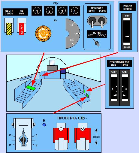 También estoy buscando donde estaba el control del SDU, No CAY si no СДУ, en el stick de control. Juraria que había leido que el mismo mando botón que se usa para desconectar la estabilización y el guiado, CAY (una especie de piloto automático no confunfirlo con СДУ-SDU) es el que dejándolo pulsado saca todas las funciones SDU (СДУ) del avión, incluido las de limitación de ángulo de ataque-OPR (ОПР), lo que permite hacer la cobra sin quitar las manos de los gases ni del stick.