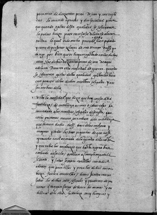 "...poco mas de doszientos pesos de oro y me suplicais lo mande aprovar y dar facultad para que quando gástos detsa qualidad se ofreçieren lo podais hacer pues no se sufre dilatarse a lo consultar. Lo cual todo me parece que fue bien proveido y como de personas zelosas del mio serviçio assi yo tengo por bien que se haya gastado en las dichas cosas los dichos doscientos pesos de oro De aqui en adelante, durante esta neçesidad de guerra, quando se ofrecieren gastos desta qualidad gastarelos heis con pareçer de los dichos nuestros ofiçiales y avisar me hais de ello.