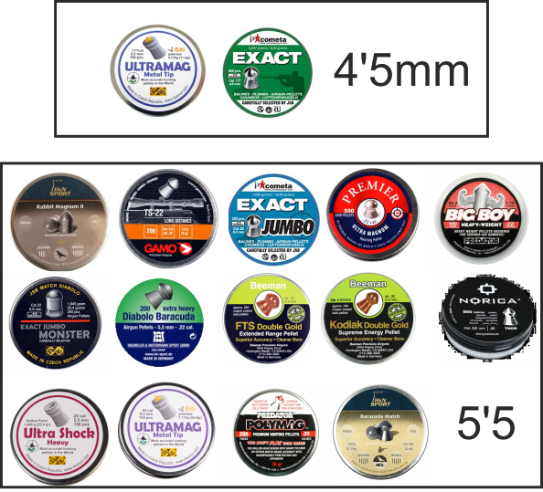 prueba los jsb expres (0,51 gramos) que para esas potencias van de muerte.