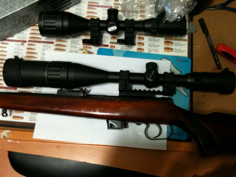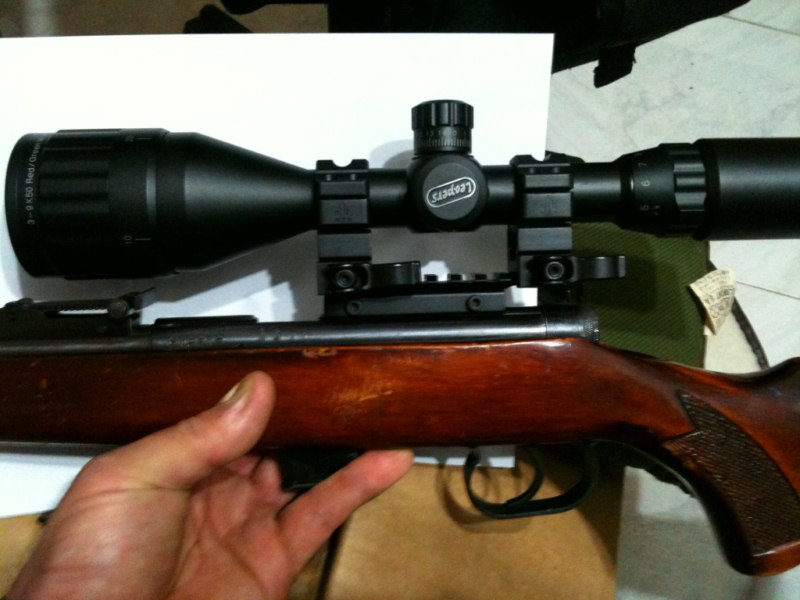 Aqui te voy ha dejar unas fotografias de una de mis carabinas con dos visores diferentes los dos con campana de 50 el mas largo con anillas medias y el otro mas corto con anillas altas como veras ambos montados sobre el carril fijo que levanta unos +- 4mm mas.