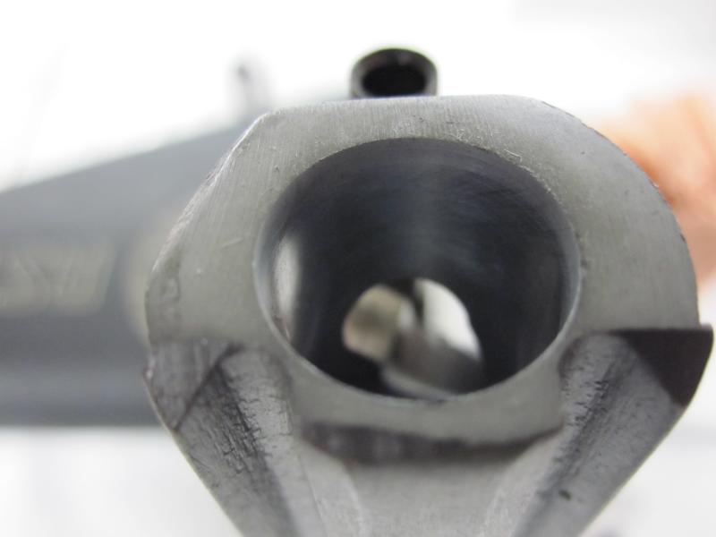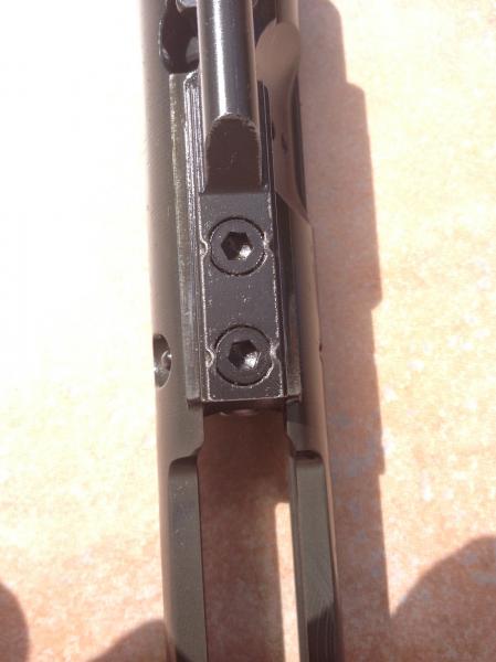 La "Gas Key" no está correctamente bloqueada, le han dado un apretón pero este no llega a los tornillos. Para que quede firmemente fijada los tornillos tienen que estar deformados por el apretón. Además los tornillos son métricos, lo que ya convierte a este arma en algo curioso.