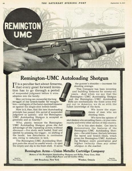 En 1905 la compañía Remington Arms Co, ofrece al mercado norteamericano la primera semiautomática producida en ese país, la Remington modelo Autoloading Gun que pasara a denominarse como modelo 11, al cambiar el nombre de la empresa por Remington Arms - Union Metallic Cartridge Co. en 1911, esta escopeta, de acción por recorrido largo del cañón nace fruto de un acuerdo entre su diseñador John Moses Browning, con la compañía Remington Arms Co. para producir dicha arma a imagen y semejanza de la célebre Automatic-5 de Borwning para el mercado Americano.