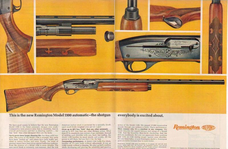 Después de tres años de desarrollo sale al mercado en 1963 la nueva criatura de Remington denominada 1100, lo primero que llama la atención es su nombre ya que en él, se incluye el mítico numero 11, no es casual, tiene un porque, la confianza en ella y la idea de un nuevo comienzo se derivan de esta elección.