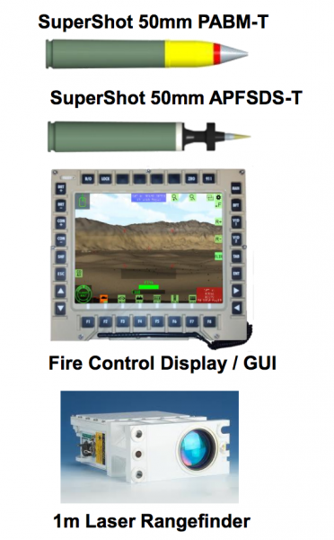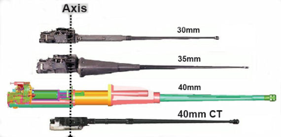 La torre, llamada MCT30 porta el cañón de ATK XM-813. Con 6 piezas se pasa del 30 al 40 o alreves, evidentemente una es el cañón. Este fué desarrollado para el Future Combat Systems (FCS).