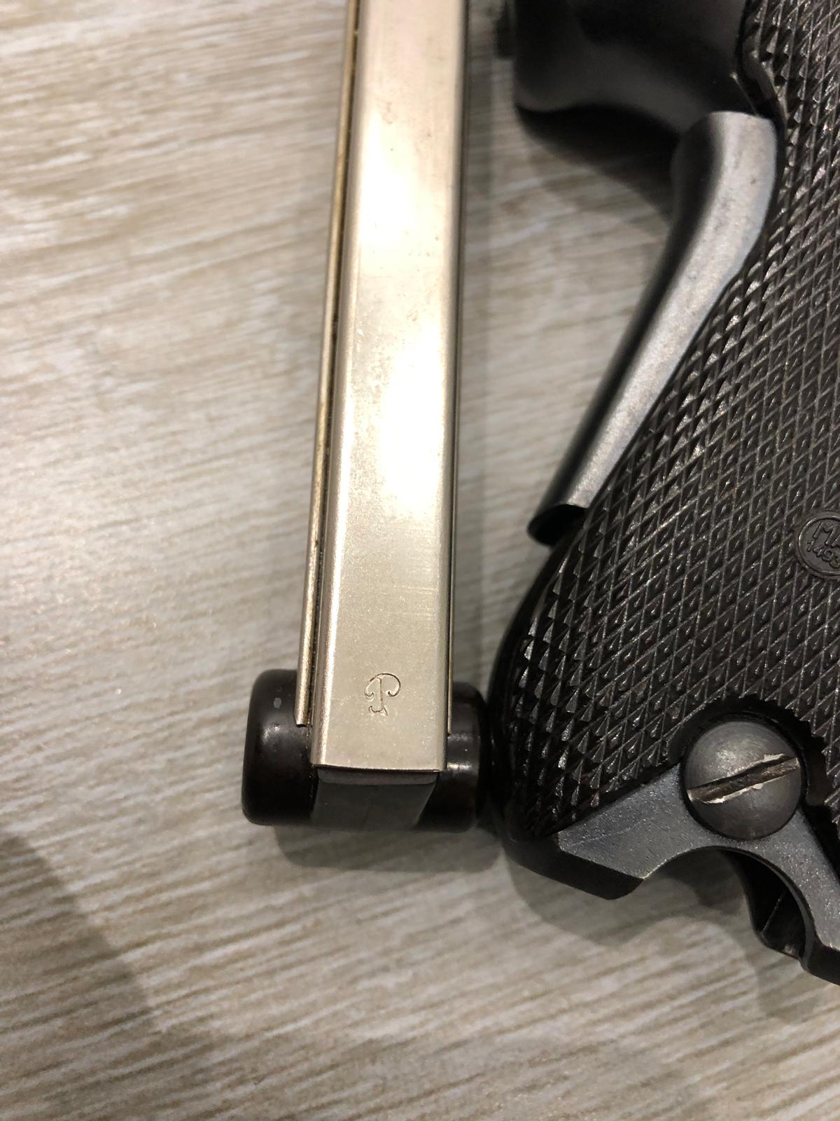 javikarras escribió:Si no me equivoco es una p06 de DWM destinada al mercado civil. El taco de madera del cargador concuerda con la época. Lo que desconozco es el significado del marcaje de la parte trasera, seguro que algún compañero experto desvela el misterio.