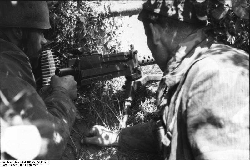 Una browning calibre .30 y en la foto de los alemanes, parece capturada al enemigo en ese momento