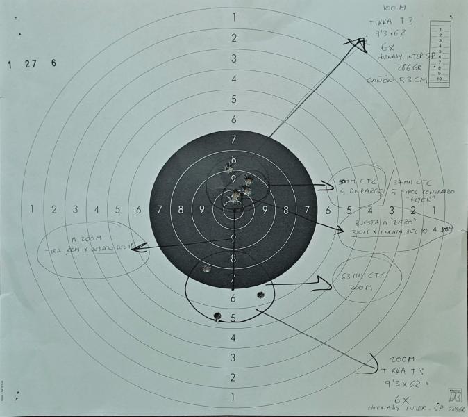 Creo que por las anotaciones queda claro el ewuipo utilzado y las agrupaciones a 100m y 200m. Espero que se vea bien.