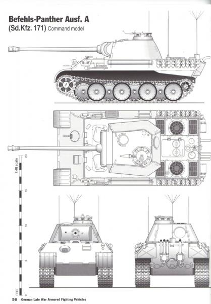 como dice mario, es un panzer V Panther ausf A...pero si hay que especificar mas la version, decir que es uno de los fabricados en diciembre de 1943 (optica monocular para el tirador, eliminacion portillos/troneras laterales en torre), y ademas que no es un Panzer V Panther Ausf A, a secas....es mas concretamente un Pz.Bef.Wg. Panther Ausf A...carro de mando, identificable por las antenas en techo de torre (FuG5) y trasera de barcaza (la antena tipo estrella/paraguas) para el equipo de radio FuG8.