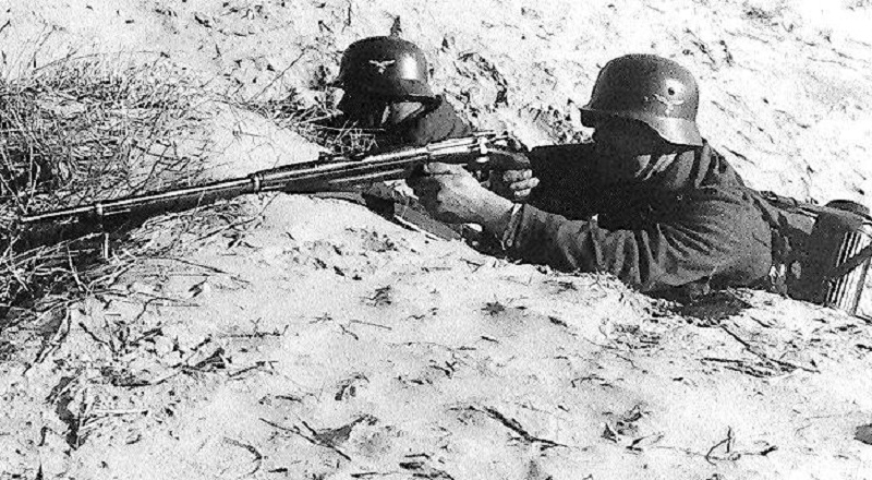 Este de la Kriegsmarine lleva a la espalda un Kar98a y en la mano lo que parece ser un machete británico.