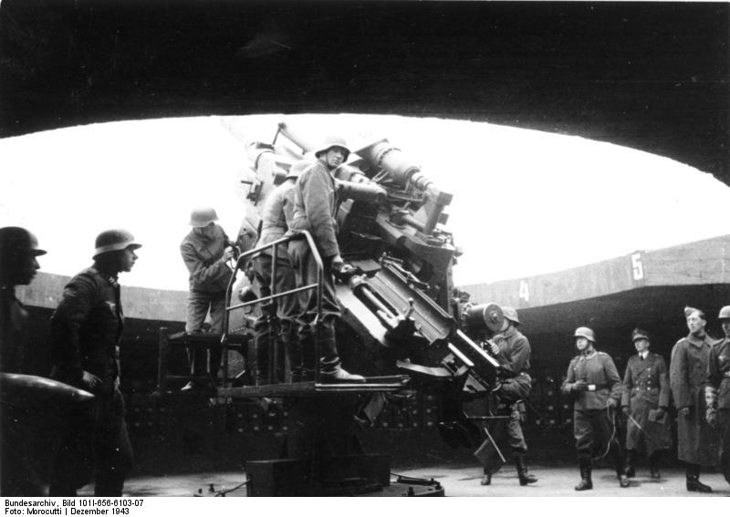 Tiene toda la pinta de ser un Flak 40 de 128 mm en una torre antiaerea (Flak) de Berlin.