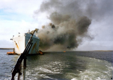 Es una MAG de las fabricadas en Inglaterra, que asiste impotente al hundimiento del Sir Galahad, en la guerra de las Malvinas :D