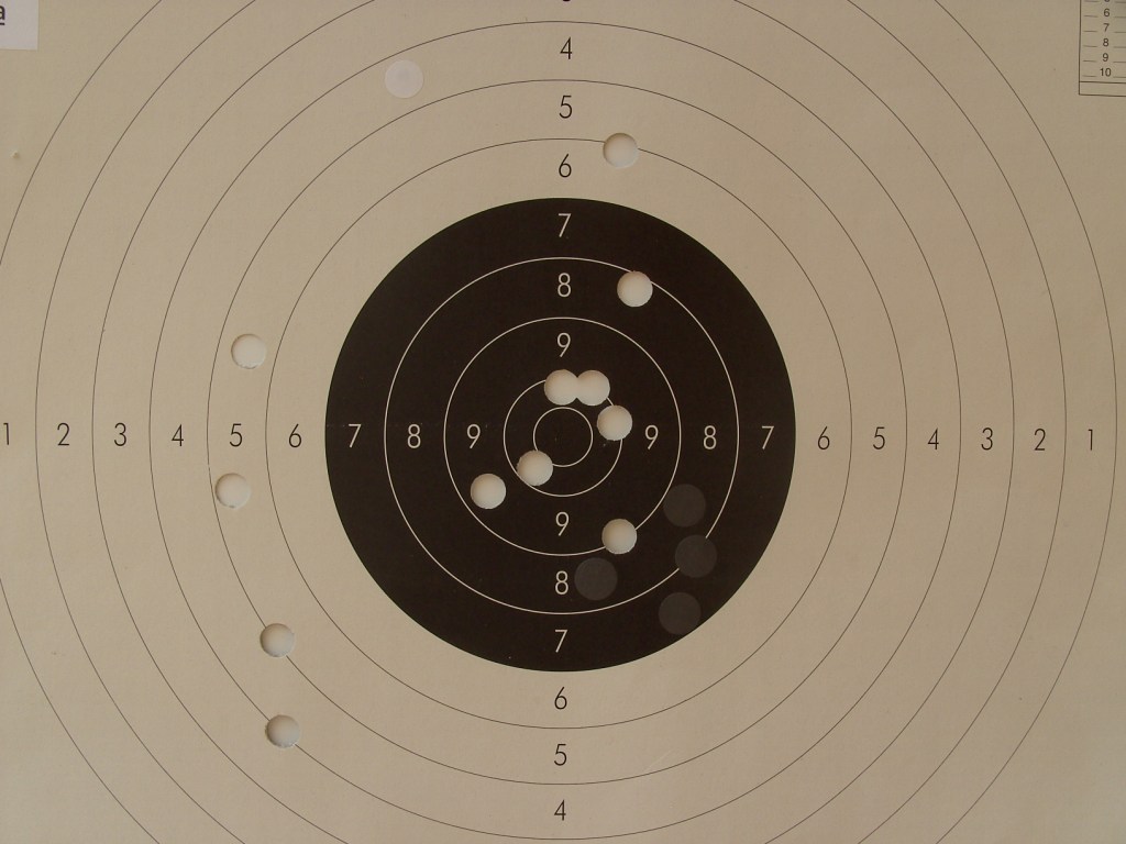 Puede que sea aprensión pero los disparos me sorprenden en sitios que no los espero y algunos muerden ligeramente desequilibrados cosa que no hacen los otros que sacan el cartón limpio como si fuera un sacabocados.