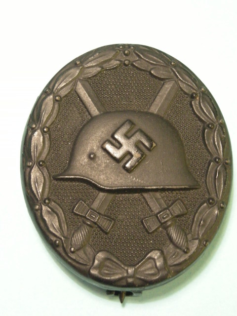 Es una medalla alemana de herido en combate de 3ª clase (hierro), del modelo de 1939 en adelante, se la concedian a aquellos que habian sido heridos 1 o 2 veces en combate (a partir de 1943, tambien a los civiles heridos en los bombardeos aliados) o habian sufrido congelaciones en el frente.