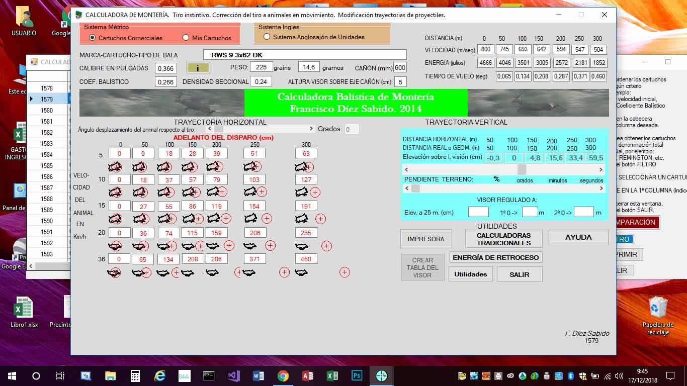 Resumen: habría que disparar 15 cm mas adelantado con el 9.3 que con el 22-250. Por supuesto, con otras balas mas habituales en batida, esta diferencia se acortaría sensiblemente. He puesto estas dos para exagerar la diferencia. Que cada uno saque sus conclusiones.