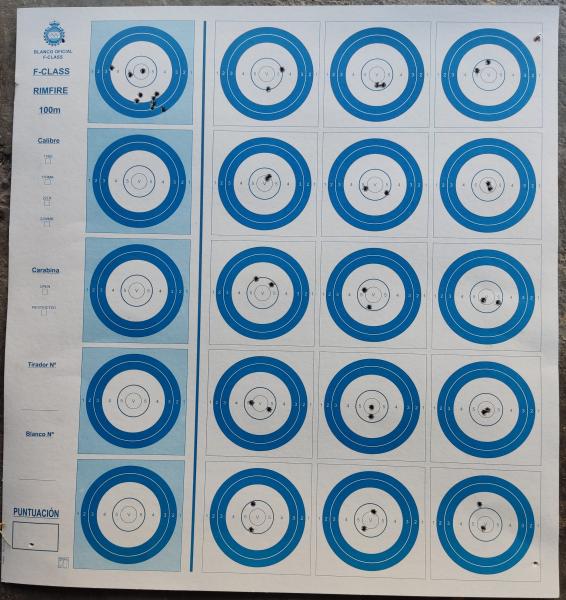El otro día tuvimos el Provincial de F-Class-R a 100 m y tiré con la R-100. Los resultados los mismos que con "mi" Lapua Midas +, y curiosamente sin tocar el sintonizador. Pero observé una cosa que comparto.