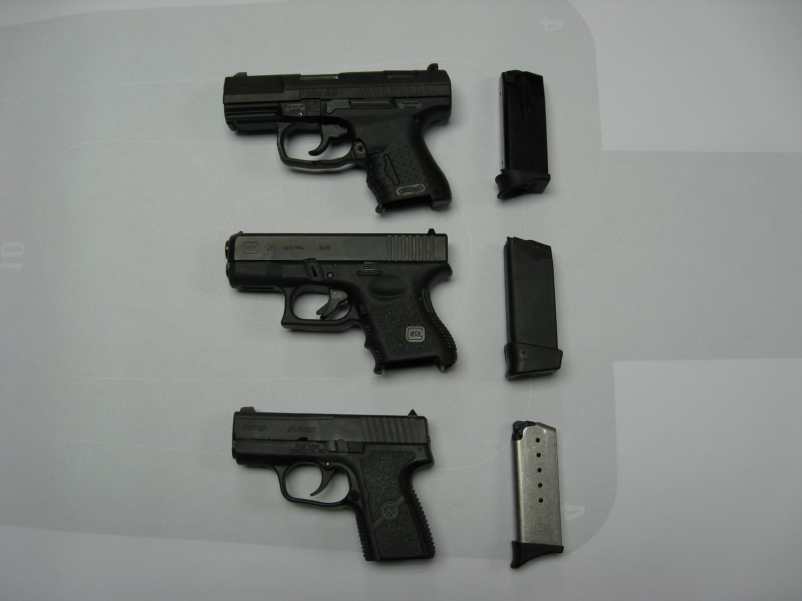 Como Back Up me quedo con la Kahr PM9, la Smith Wesson Body Guard .380 y por último la Glock 26.