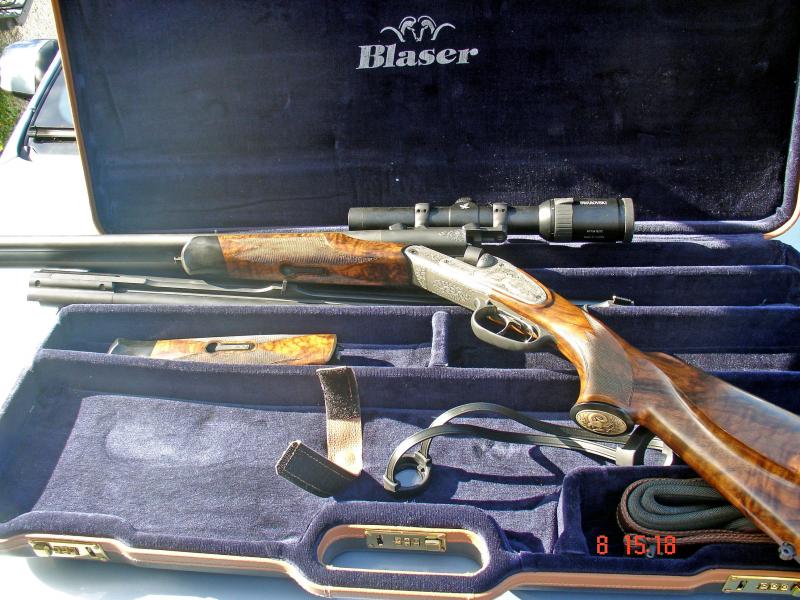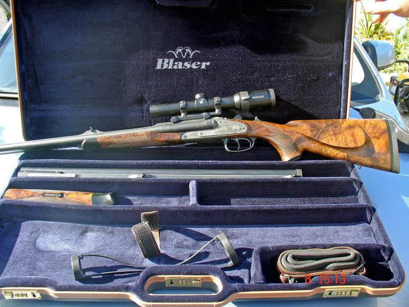 Yo también quiero mostrar mi Blaser. En este caso un expréss S2 safari con 2 cañones. Uno 9,3x74 que se adapta muy bien a nuestras monterías y lleva un swarowski z6 de 1-6x24 y un segundo sin visor del 470 NE. El primero me ha dado muchas satisfacciones en monterías, el segundo cañon solo lo he utilizado con un búfalo de agua de unos 900 kg en Argentina. Espero que pronto con su primo africano.