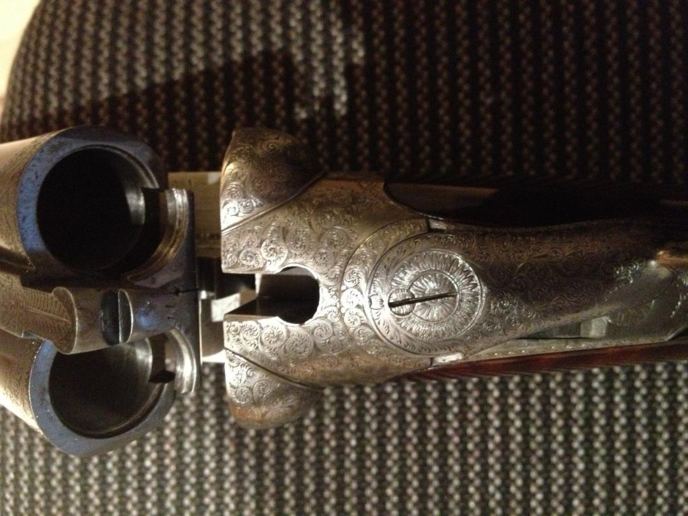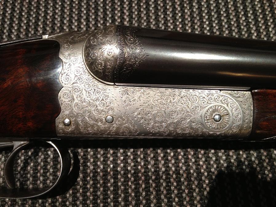 Lleva triple cierre Purdey como creo que lleva la tuya y es sistema Anson & Deeley cañones tipo demibloc, aunque el tipo de acero no concuerda el modelo se parece mucho, tienes que tener en cuenta que tanto los aceros Cokerill (Belgas) como los Krupp (Alemanes)son de calidad similar o sea lo mejor de lo mejor de su epoca, acero de diez sobre diez, yo diría que lo es.