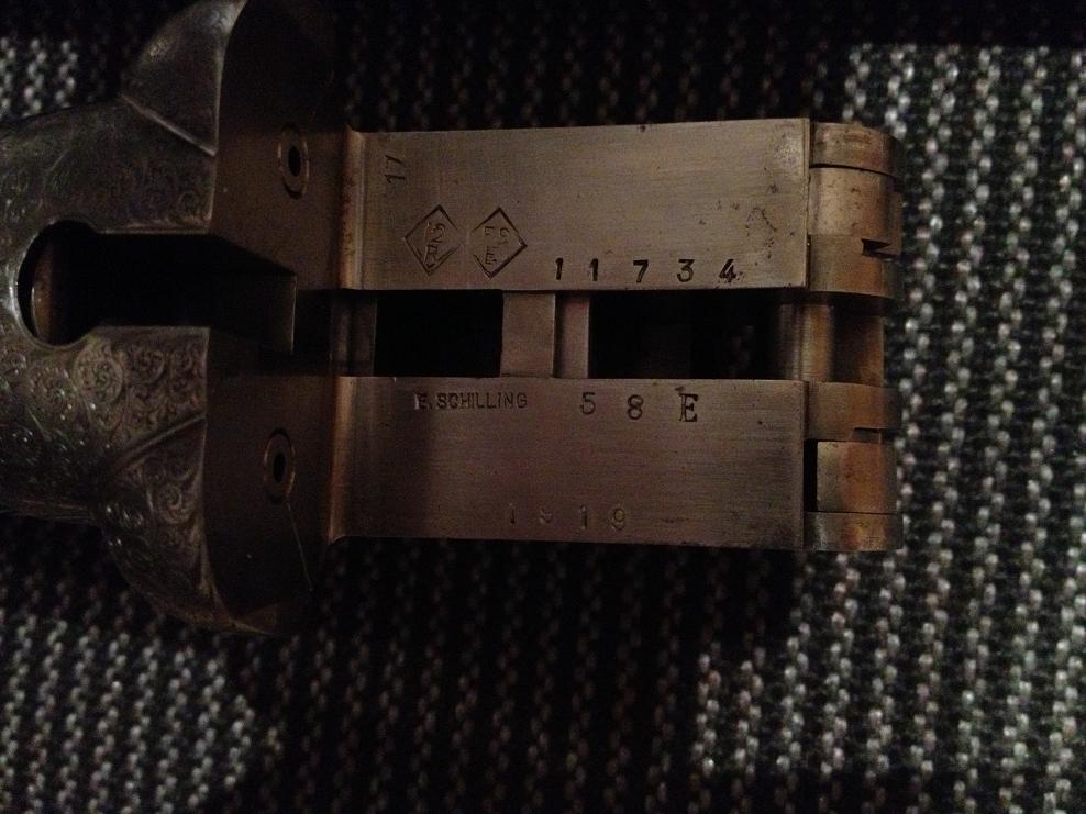 Hola,el modelo es el 153,es uno de las ultimas escopetas que fabricaron,poco tiempo despues se vendio la fabrica,la mayoria de los cañones fabricados por Eduardo Schilling fueron el sistema llamado enganches a cola de milano y en segundo lugar los cañones monobloc,seria interesante que ponga fotografias del plano interior de la bascula y su cierre,y tambien de la culata entera.