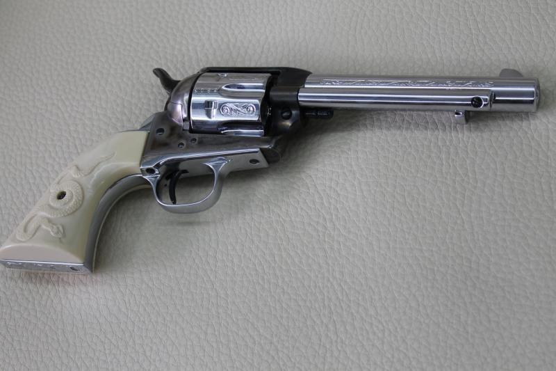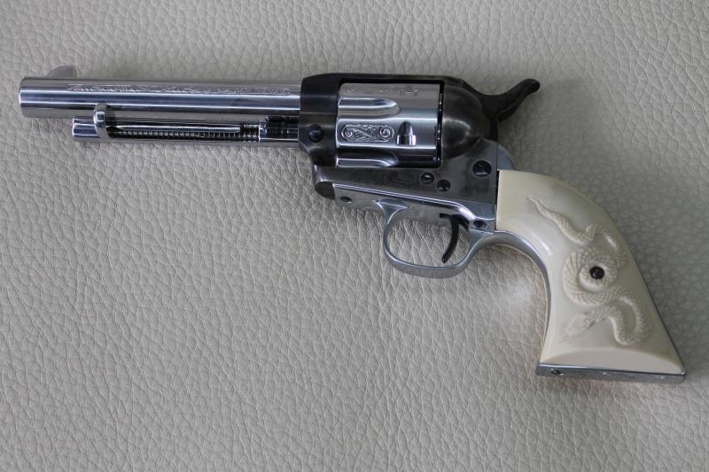 He aquí otra vista del mismo (aclaro que el revólver está descargado, y la foto está sacada con una cámara automática; no hay nadie frente a la boca de fuego)