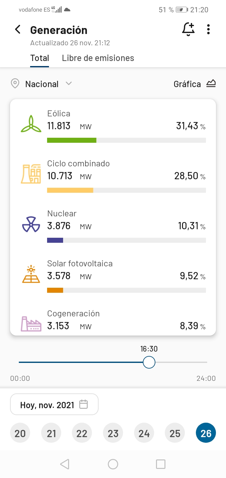 Con lo que si hay mucha energía en la Red hayque parar, hasta ahi bien, pero claro luego me voy a la página de Red eléctrica y me encuentro que están quemando gas a tutiplen
