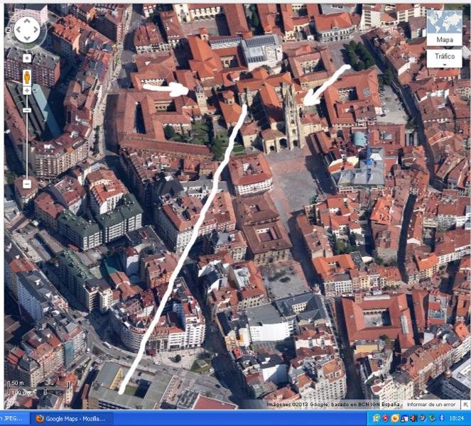 Reconocido el lugar, la catedral gótica con una sola torre que se al fondo es la de Oviedo, sólo falta por identificar esta conocida ametralladora antiaérea.