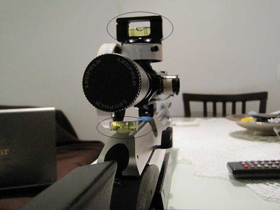 Tambien podrias ponerle un nivel a la carabina, vigila con los niveles que van sujeto al carril, si no son de buena calidad, se deforman con facilidad. En mi carabina de aire lo llevo pegado con epoxi en el lomo del carril.