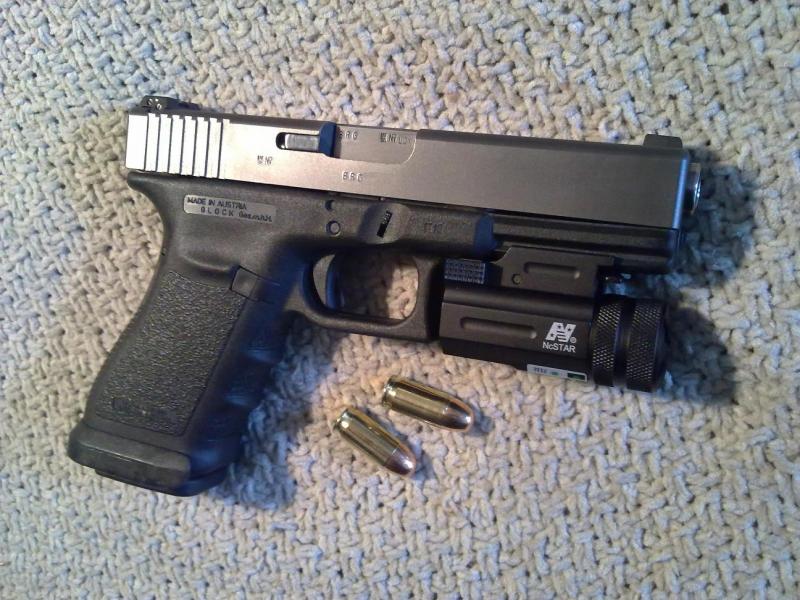 pkersey escribió:Glock 21 en .45 ACP con láser NC Star verde y miras regulables.