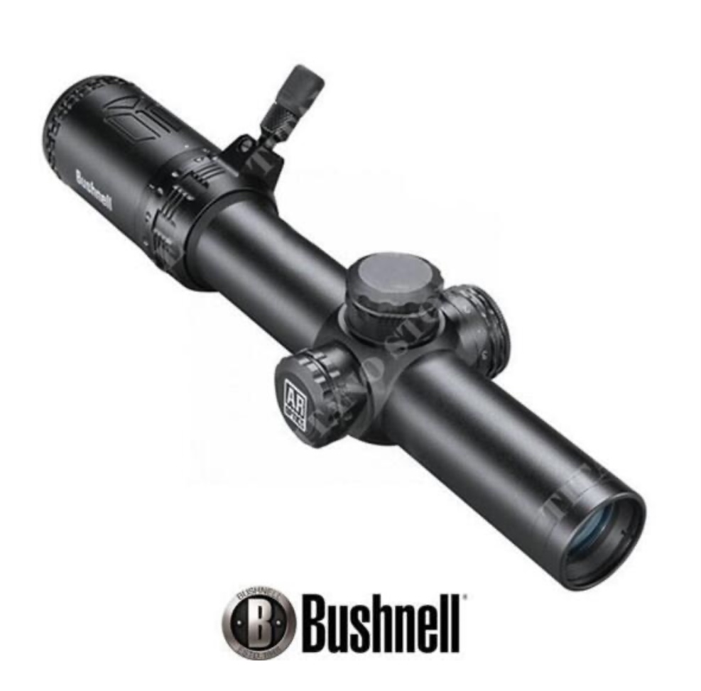 -Visor de back up Busnell AR 1-8x24 SFP con tubo de 30 mm y retícula iluminada BTR1 en segundo plano focal. Un click = 1/10 de miliradian (1 cm).