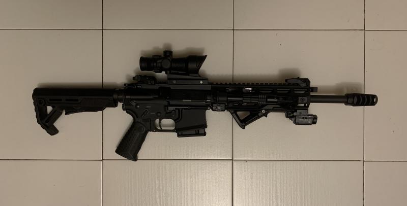 Yo le pondria la linterna o el laser ese ya con algo a 45 grados y aprobechar mas , con ese tamaño de guardamanos se ve cargadete.