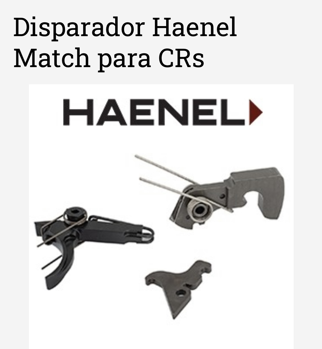 -Disparador de un solo tiempo Haenel Match regulado a 1250 gramos.