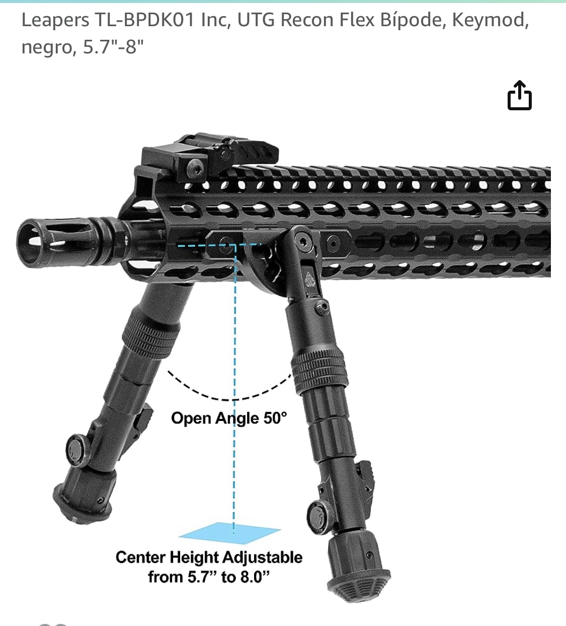 -Bípode 5,7”-8” L. U. F. con patas independientes para carriles separados KeyMod.