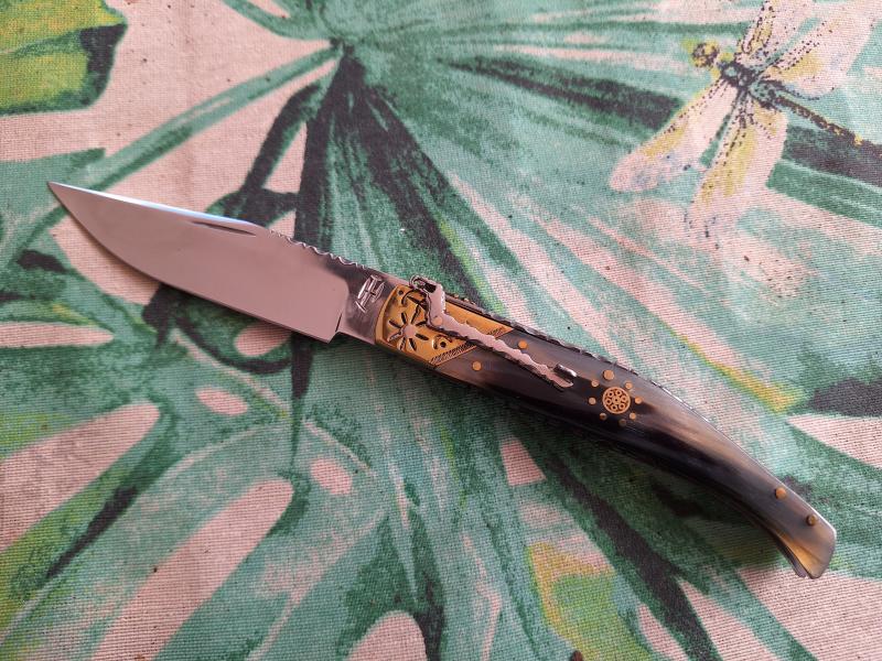 Navaja Nino Nista Mozzetta Guardiagrele 20 - 90€ - Navaja Italiana artesanal realizada por Nino Nista. Hoja fabricada en acero inoxidable 420 con acabado pulido a espejo con lomo decorado a lima . Sistema de la cierre de hoja de pistón . Mango en una sola pieza en punta de cuerno bovino seleccionado, con un esmerado pulido a espejo. Muelle decorado a lima con acabado pulido a espejo