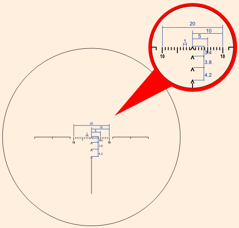 retículo del dragunov y otras armas rusas, el del visor PSO 1, muchos dicen que solo se puede sacar distancias con la estadia que figura en el sector inferior izquierdo, pues bien están errados ya que este visor esta echo para sustentar en miliradianes.