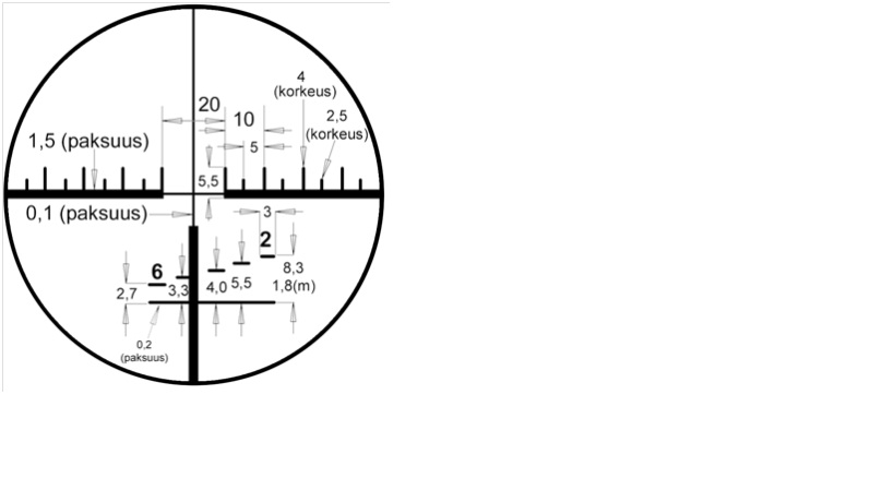 cotas del visor carl zeiss 1,5-6x42 del manual de tirador finlandes, las cotas están en mils