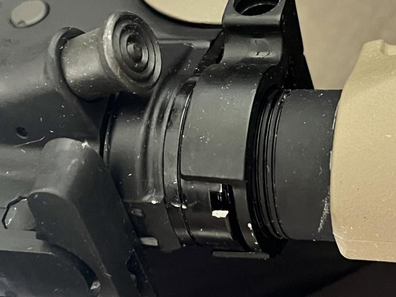 Como os comenté, era grasa o vaselina pegada ahí. Desconozco el origen pues es un arma que acabo de comprar de segunda mano. Si tiene marcas de haber apretado, pero lo gordo se ha ido con un cepillo y desengrasante.