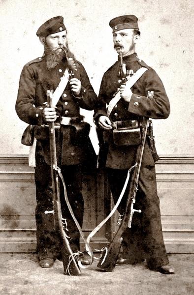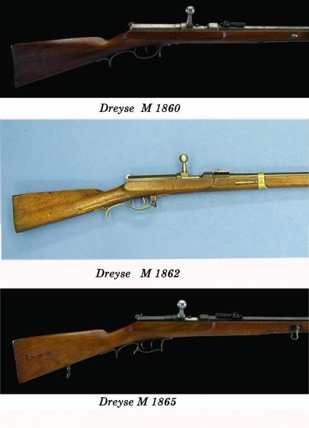 Son fusiles Dreyse prusianos pero no del modelo 1841, son algo posteriores. Fíjate en el guardamontes y ya lo tienes.