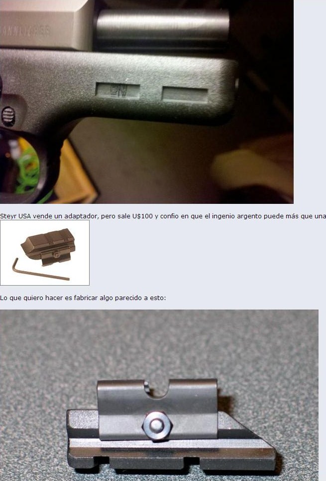 A ver quien me puede orientar para conseguir un rail picatinny para pistola Steyr S6 para poder adaptarle accesorios, he buscado en USA pero vale 100€ mas portes y creo que es fácil de fabricar teniendo herramientas adecuadas.