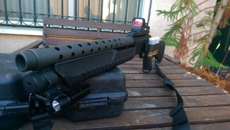 Guiada con la A, adquirida para defensa con solo 2 cajas de postas dispardas esta nueva, monta carril picatiny en cajon de mecanismos y en guardamano (instalacion hecha por armero) culata tactica fabarm, pistolet para dejarla pequeña, visor holografico pentax, correa tactica, linterna de led, portacartuchos. Se entrega maletin rigido nuevo a estrenar que lo comprare si se hace el envio. Precio envio incluido y guia de circulación. 800 Euros. No negociable. Si se recoge en mano son 750 sin maletin.