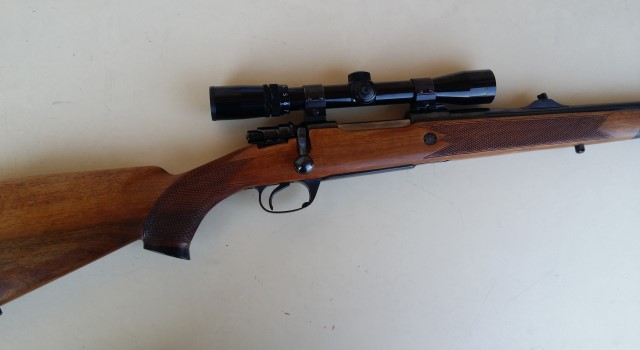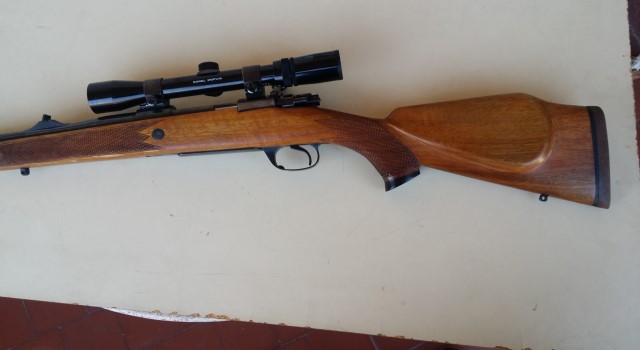 Se trata de un Kettner, acción 98 pura y dura del 30 - 06, al que se le han hecho algunas mejoras: Alza, gatillo, nuez, madrera......... y recoronado profesional del cañon. Excelente precisión y poquísimo uso.