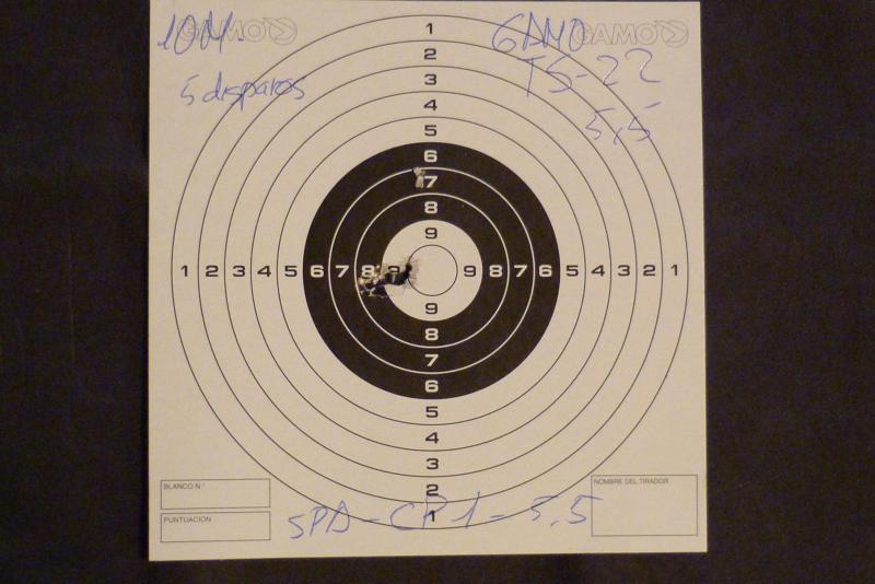 En cuanto a precisión, os dejo unas dianas con distintos balines, (lo siento, no tenia JSB aquí en casa, en otra ocasión lo haré), pero los resultados han sido buenos, he de decir que la distancia es 10 metros, a mano alzada y con el arma según ha salido de la caja, sin ajustar miras ni nada y yo que no soy tirador profesional.