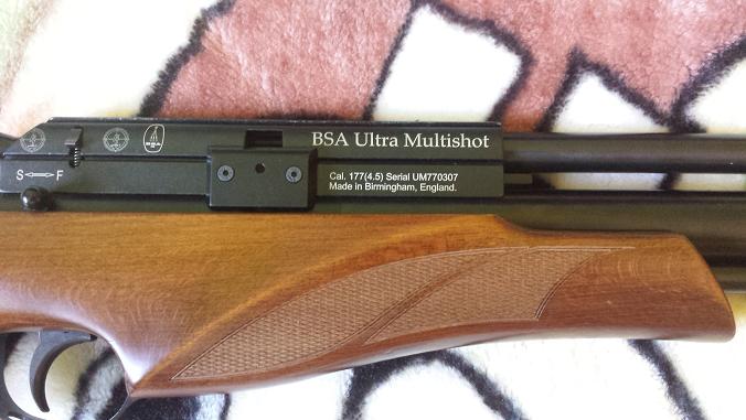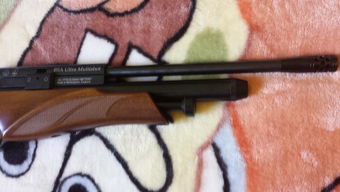 Pues vuelve a la venta se trata de una de las ultimas hornadas de bsa una ultra multishot con cargador monotiro en calibre 4,5 y 16 julios como se puede apreciar lleva culata montecarlo ambidiestra de lujo con picado y un leve ribete en el guardamanos cosa que las normales no poseen se vende la carabina sola 400€ portes a cargo del comprador.