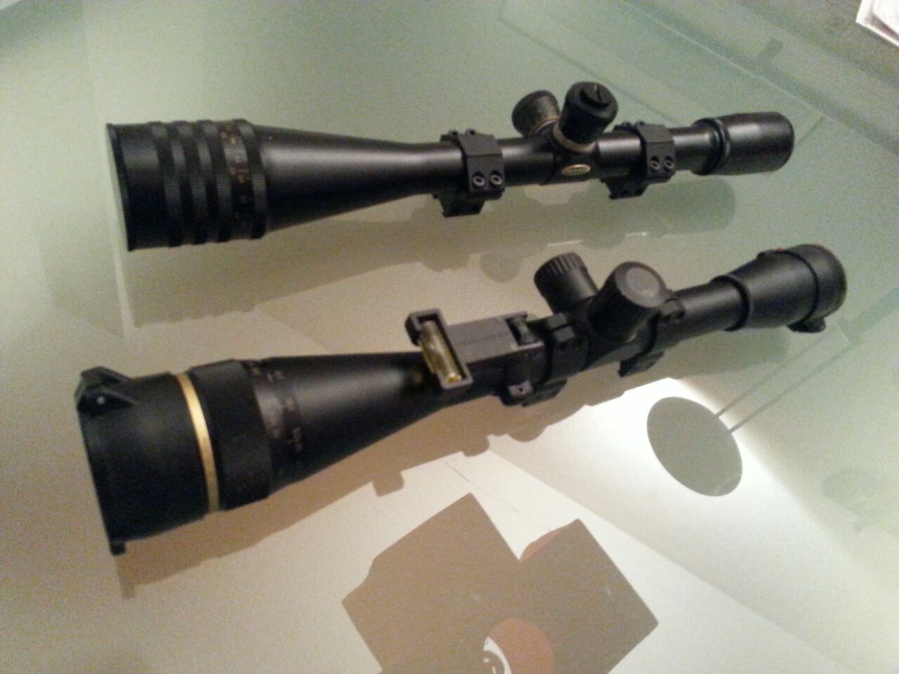 Leupold Competition 36x45, retícula 1/8 MOA precio mercado 1200 Euros.