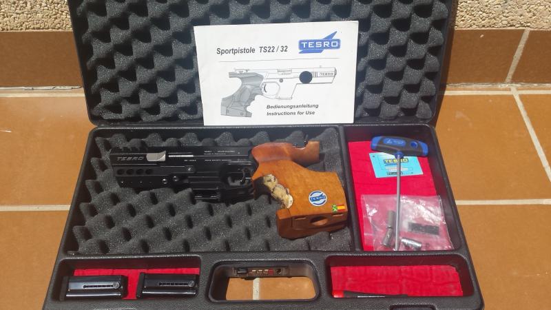 Vendo esta magnifica pistola del calibre 22lr en perfecto estado (la masilla que lleva en el puño se quita fácilmente), muy poco uso y con los contra-pesos inerciales que impiden la reelevación del arma después del disparo permitiendo tiempo extra para apuntar, y evita los retrasos en el tiro por el efecto de tener que colocar el arma en su sitio después de cada disparo valorados en mas de 160€. Tiene maletín de luxe con combinación, dos cargadores, herramientas para el reglaje y manual para regular todos sus parámetros (peso del gatillo, tiempos, alzas etc).