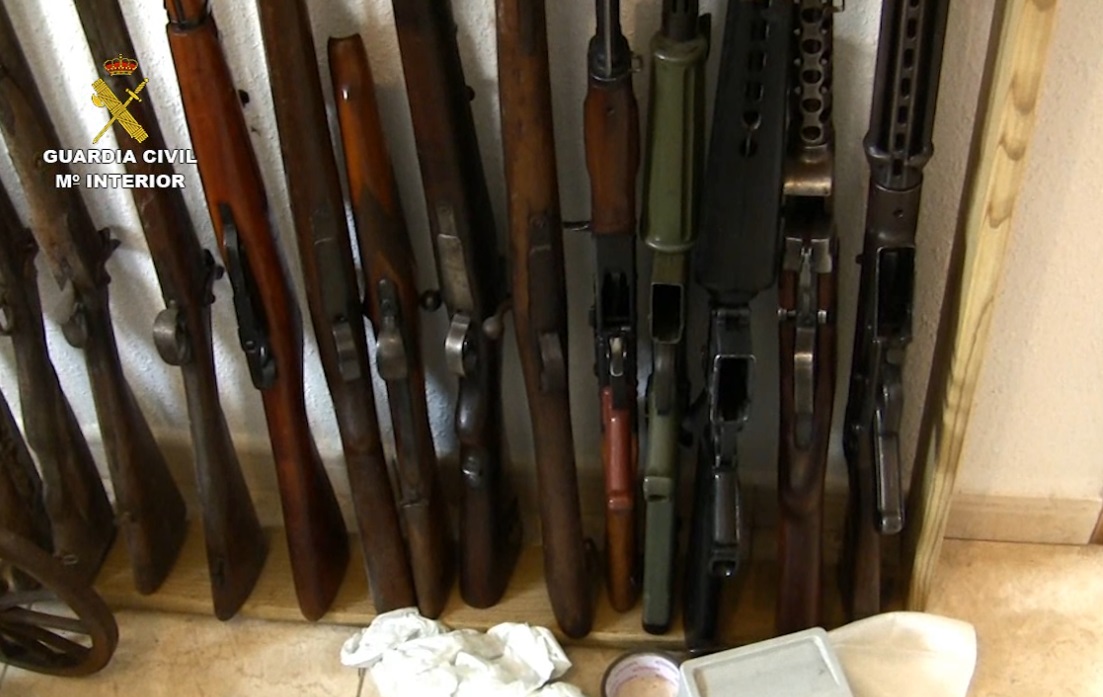 En la web de la GC se puede descargar el video de esta operación, llamada Taronja, en la que aparecen todas las armas, el taller, las herramientas, la munición ... Hay de todo y de lo más variopinto, antiguo y moderno, fusiles, escopetas, pistolas, revolveres, desde mosquetes de avancarga y pistolas mototiro de avancarga también hasta fusiles de asalto, un cañón en miniatura, piezas de todo tipo, escondido en armarios, debajo de los muebles de la cocina ...