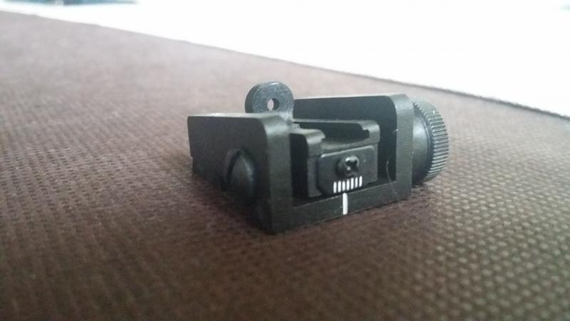 Sobre el alza trasera, no tengo ni idea si le servira un alza de una M1 Carbina de acero original, ni se donde las venden. Si alguien nos puede ayudar en esto, seria muy intersante cambiarle algunas piezas de plastico por las de acero originales.