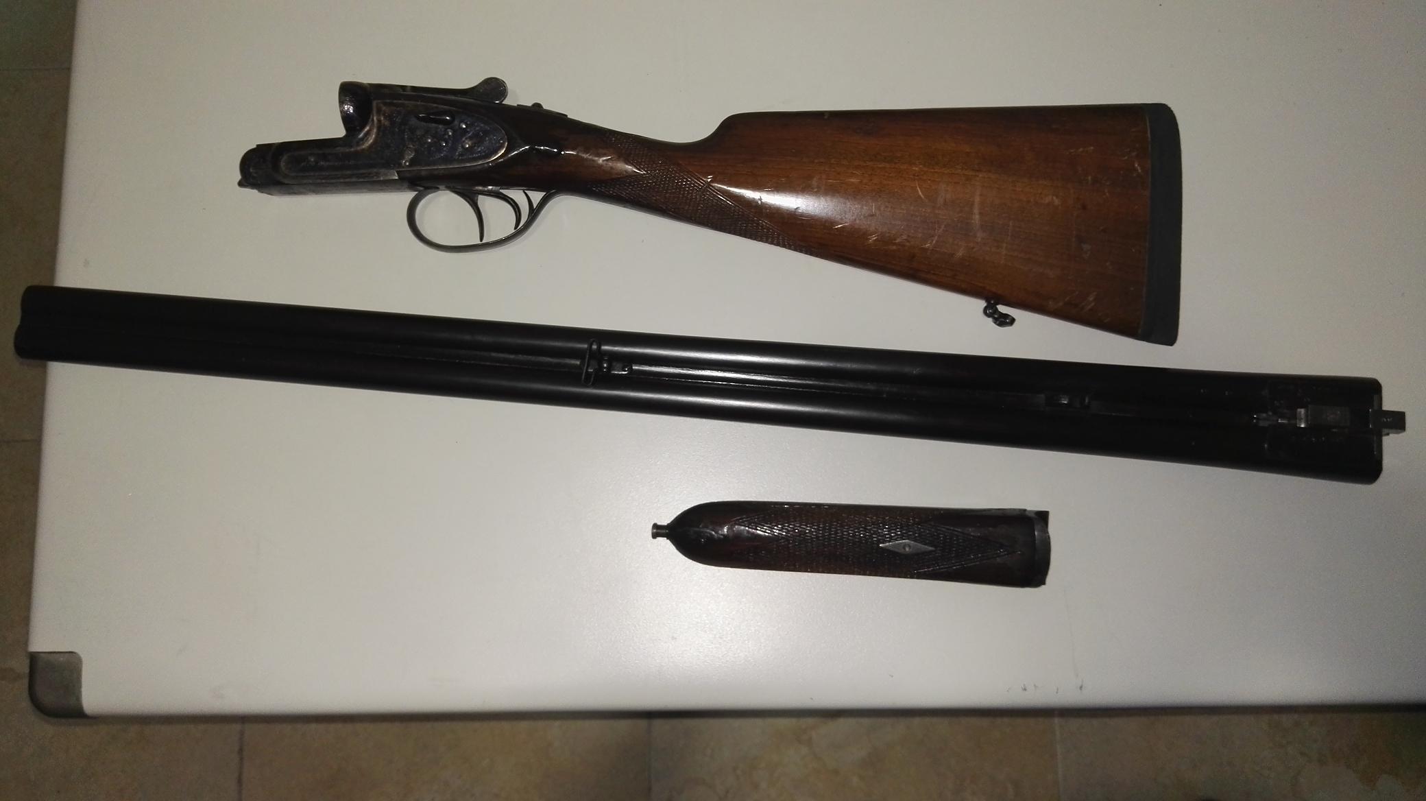 Escopeta paralela marca AYA, calibre 12, expulsora, de hierros muy bien cuidada, cañones impecables interiormente y la madera los roces propios de algunos años cazando con ella en el campo.
