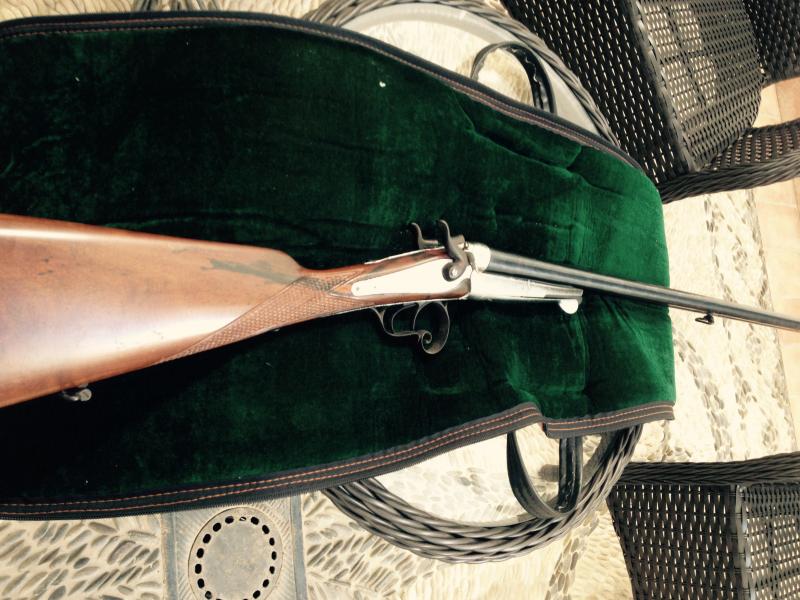 Hola: Es una Saint Etienne de alrededor del año 1900. Es la escopeta que encarna la transición de los cartuchos de espiga (Lefaucheux) a los de fuego central. En Francia se siguieron usando las escopetas de cartuchos de espiga hasta bien entrado el siglo XX.
