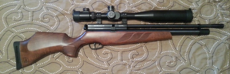 Te puede interesar una BSA Bucaneer SE del 5,5, con visor Tasco 8-32x50, rueda de paralaje de 95mm, monturas Leapers y funda Gamo? He repasado la culata y sólo he encontrado la marca que se ve en la foto. En los hierros no he encontrado nada.