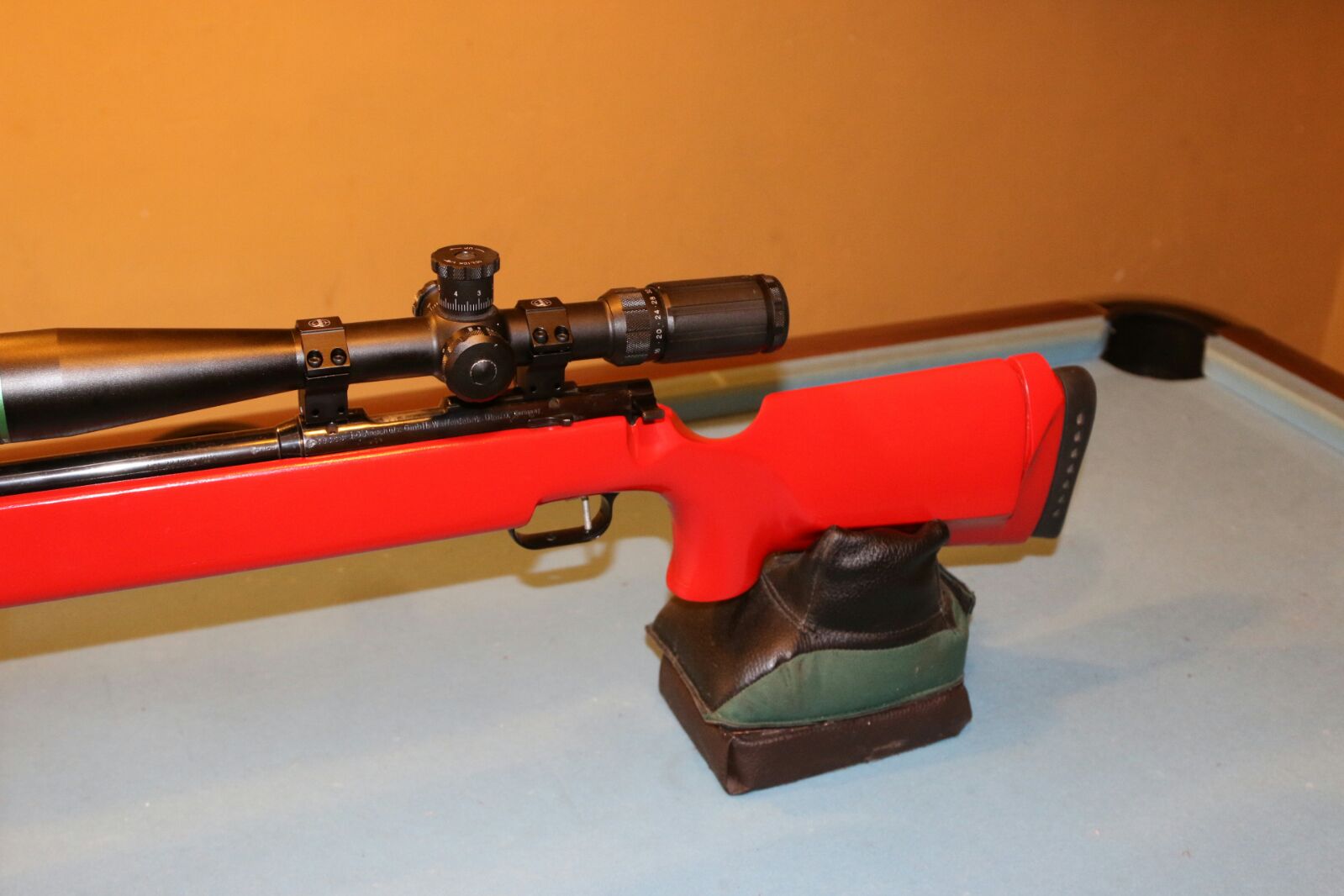 Magnífica carabina anschutz del calibre 22 con gran precisión, en color rojo Ferrari.  Ideal para fclass 02